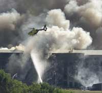 | | Rescue helicopter surveys damage to the Pentagon Building, U.S. military Headquarters outside of Washington. |