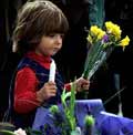 | | A young girl pays tribute to victims of Tuesday's attacks in New York and Washington, outside the US embassy in central London, September 12. [Reuters] |