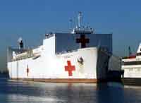 | | The USNS Comfort is shown in Baltimore harbor on September 12. The ship will embark Navy medical personnel at Earle, New Jersey before setting sail for the coast of New York. The Comfort has a crew of more than 750 Navy and civilian medical and support personnel, and also contains 12 fully-equipped operating rooms [Reuters] |