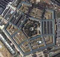 | | The satellite image of the Pentagon shows extensive damage (Top Right) to the western side and interior rings of the multi-ringed building. |
