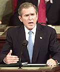 | | U.S. President George Bush addresses a Joint Session of Congress from the House Floor in the Capitol Building in Washington September 20, 2001. [Reuters] |