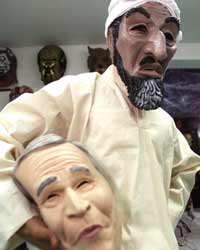 | | A Mexican store worker fools around as he wears an Osama bin Laden outfit complete with latex mask, and a George W Bush latex mask on September 26, 2001. [Reuters] |