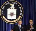 | | US President George W Bush speaks at the Central Intelligence Agency's headquarters in Langley, Virginia on September 26, 2001 as CIA director George Tenet (R) applauds. Bush visited the headquarters to thank the employees at the agency for their work in the ongoing campaign against those who recently attacked the US. [Reuters] |