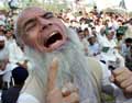| | A Pakistani man sings along at a solidarity day rally in Peshawar on September 27, 2001. Pakistan ended talks with a US military team on Thursday and called for a day of solidarity, with rallies nationwide to back the government's support for the "war on terrorism." [Reuters] |