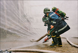Firefighters are diluting the toxin chlorine