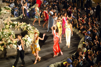 will be broadcast live from Quito June 1. [Reuters] Miss Universe 2004 candidates walk the runway