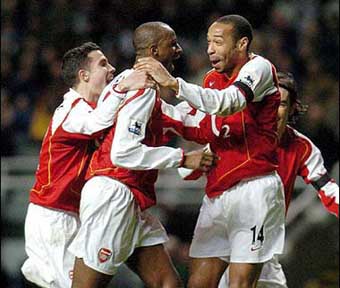 But it looked destined to be a goalless first 45 until Freddie Ljungberg robbed Jermaine Jenas and flicked on for Vieira, whose chip forward hit a Newcastle defender and rebounded back nicely for the midfielder to wallop a dipping shot over a bemused Shay Given. Newcastle best shout in the opening period was for a penalty against Ashley Cole, who appeared to handle to prevent the ball reaching Craig Bellamy. The Gunners were lack-lustre for much of the second half but Newcastle's spirited effort failed to carve out a clear-cut chance for an equaliser. |