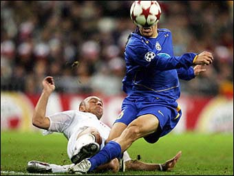 But it was a determined-looking Real who were the first to show when Ronaldo hooked a volley over the bar after Roberto Carlos had wafted in a cross from the left.