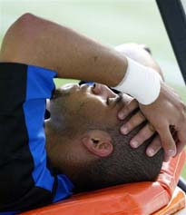 "The Italian club's medical department sent the CBF (Brazilian federation) a report explaining the injury to Adriano's right knee which makes it impossible for him to take part against Peru and Uruguay," said the CBF on its official website. Inter said on Sunday that Adriano had a 'suspected light strain to his medial ligament on his right knee'. Despite his outstanding season with Inter, Adriano is still not a regular in the Brazil team, where Ronaldinho and Ronaldo usually play in attack. He has not started a game since the friendly away to Germany last September. However, Adriano made his mark at international level when Brazil fielded a second string at last year's Copa America, scoring seven goals to finish top scorer and help Brazil to win the title. The CBF said the Santos midfielder Ricardinho, a reserve in the 2002 World Cup-winning squad, had been named as a replacement. Brazil face Peru in Goiania on Sunday before facing the difficult visit to Montevideo's Centenario stadium. The world champions are second in the 10-nation South American qualifying group with 20 points from 11 games.