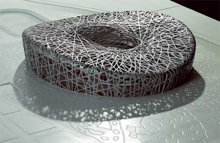 A model of China's national Olympic stadium, nicknamed "bird's nest". [newsphoto]