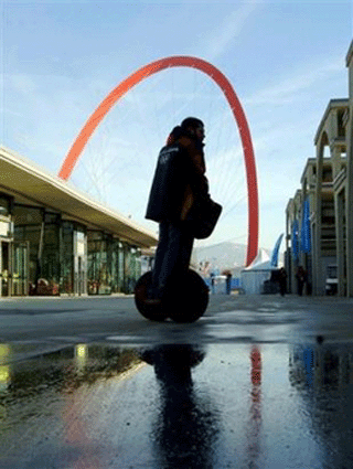 The Olympic arch is seen from the Olympic village, that was officially unveiled in Turin, Italy, Tuesday, Jan. 31, 2006. [AP]