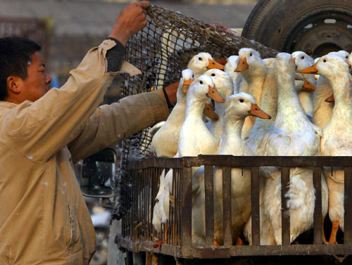 A vendor wait for customers in a poultry market in Nanjing, East China's Jiangsu Province February 19, 2006. The poultry markets in the city resumed operation as the bird flu scare eases. [newsphoto]