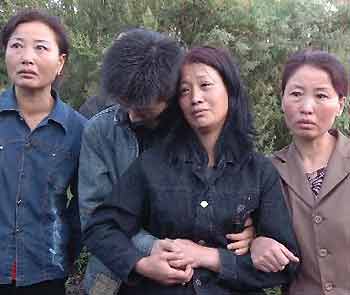 Jittery relatives of coal miners wait outside the mine in Shulan City, Northeast China's Jilin Province, August 20, 2005. [Xinhua]