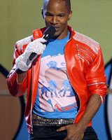 The BET Awards kicked off on Sunday night with a musical tribute to Michael Jackson in which host Jamie Foxx did Jackson's famous moonwalk and sung his hit song "Beat It" in a classic King of Pop costume -- red leather jacket and one white glove.