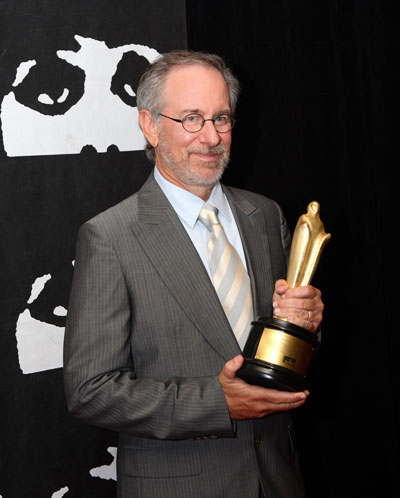 Director Steven Spielberg holds the Golden Hugo, a Lifetime Achievement award presented to him at the 42nd Chicago International Film Festival in Chicago July 15, 2006. REUTERS/Jerry T. Lai (UNITED STATES)