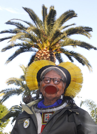Brazilian Indian chief Raoni Txukarramae arrives on the red carpet for the screening of "Tournee" in competition by director Mathieu Amalric at the 63rd Cannes Film Festival May 13, 2010. Nineteen films compete for the prestigious Palme d'Or which will be awarded on May 23.[Agencies]