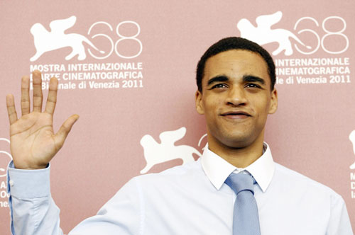 Actor James Howson waves as he poses during a photocall for her film "Wuthering Heights" at the 68th Venice Film Festival September 6, 2011.[Photo/Agencies] |