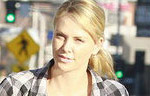 Actress Charlize Theron arrived at a friend's house in Los Angeles, California on February 5, 2012 for a Super Bowl party. [Photo/CFP]