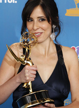 Erin Levy poses with her award winner for outstanding writing for a drama series for 'Mad Men'