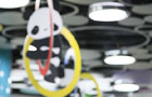 A blue light shines on the transparent duck tongue jelly so that it resembles the Water Cube.