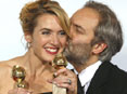 Sally Hawkins holds her award for best performance by an actress in a motion picture for her role in "Happy-Go-Lucky'', at the 66th annual Golden Globe awards.