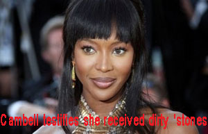 Model Naomi Campbell testified at the war crimes trial of former Liberian ruler Charles Taylor on Thursday that she received a gift of "dirty-looking stones" after attending a dinner with him.