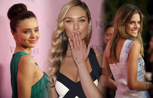 Models pose during a media opportunity to celebrate the 15th anniversary of Victoria's Secret swim catalogue in Los Angeles March 25, 2010.