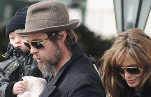 Brad Pitt and Angelina Jolie leave hotel Gritti Palace with their twins Knox and Vivien in Venice, March 12, 2010.