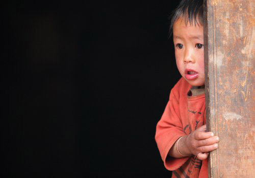A boy looks out of a door after an earthquake measuring 5.1 magnitude on the Richter scale in Chuxiong, Southwest China's Yunnan province, February 25, 2010. [Photo/CFP]