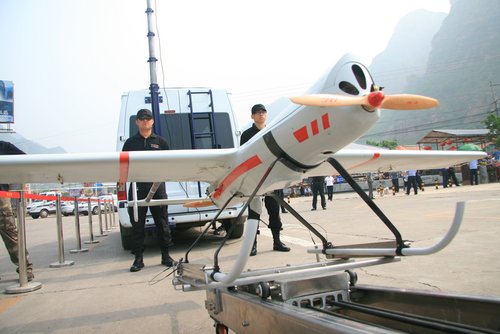 Staffers do a final check on an unmanned plane to be used for opium reconnaissance, in Pinggu district of Beijing, on June 3, 2010.[Photo/CFP]