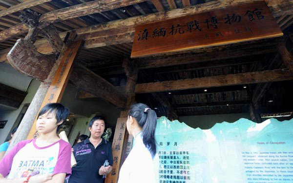 People visit a private museum which was built in memory of the China-Burma battlefields in World War II, in Tengchong county, Southwest China's Yunnan province, August 10, 2010. Duan Shengkui, 46, owner of the museum, began collecting relics of the China-Burma battlefields more than 20 years ago. The museum owns more than 20,000 items of camions, plane parts, guns, swords, books, photos and other collectibles, attracting millions of visitors since it opened in July 2005. [Photo/Xinhua]