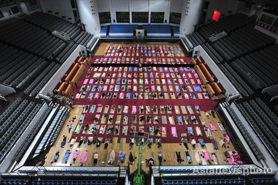 Parents of nearly 400 newly admitted freshman students sleep inside a stadium at Huazhong Normal University in Wuhan, Central China's Hubei province, Sept 4, 2010. This is the fifth year the university has opened its stadium overnight for parents from poor families. The university provided the parents with free blankets as well as tea and shower services. [Photo/Asianewsphoto]