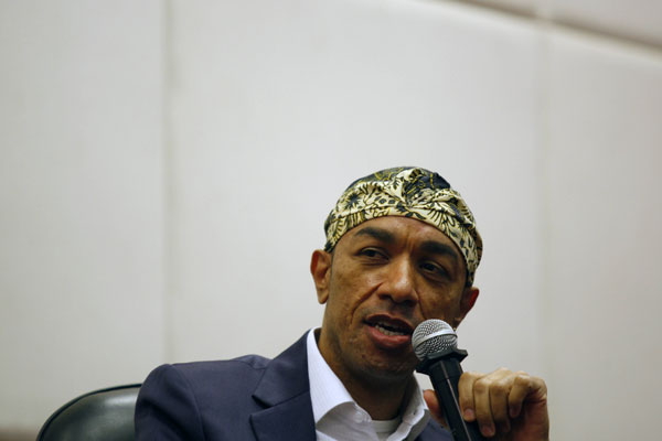Mark Okoth Obama Ndesandjo, the half-brother of American president Barack Obama makes a speech at the University of International Business and Economics (UIBE) in Beijing, June 11, 2012. During the question-and-answer session, Mark said his brother was good at planning, but he was much better at music as a professional pianist. [Photo/Asianewsphoto]