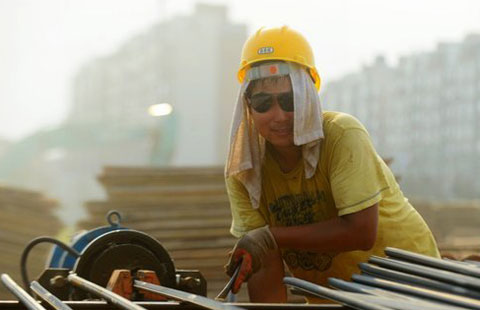 Workers cope with sweltering heat in Jiangsu province