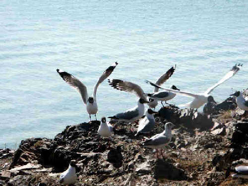 Tibet:the last paradiseUpdated: 2007-04-28 09:30 Birds at Qinghai Lake May and June are the best seasons for bird watching. More than ten species -- including geese, gulls, sandpipers, cormorants, black-necked cranes and brown-headed gulls - nest on the island during the spring time.