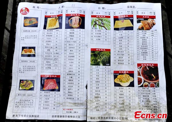 A hotpot restaurant in Chengdu gains popularity recently for British Prime Minister David Cameron visited it and had a dinner here on December 4 during his tour in China. The restaurant introduced a "Prime Minister" package, which includes all the food Cameron ordered and costs 888 yuan. An extra 1,000 yuan will be added if you ask the waiters who served for Cameron to service you. [Photo/Ecns.cn]