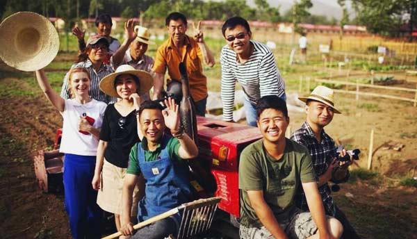 Wu Zhou (center in the front row)and his team members from Shared Harvest Beijing. [Photo provided to China Daily] |