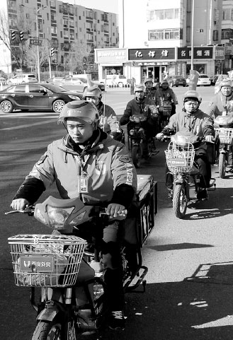 Baidu Takeout delivery staff in Beijing ride their two-wheelers to reach their customers well in time.[Provided To China Daily] |