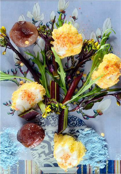 A flower painting inspires a colorful dish at Barolo in Beijing. [Photo provided to China Daily]