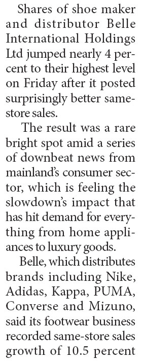 Shoppers look at shoes on display at Staccato, which is owned by Belle. The footwear maker and distributor's stock price jumped on Friday due to a surprisingly better same-store sales. Paul Hilton / Bloomberg News |
