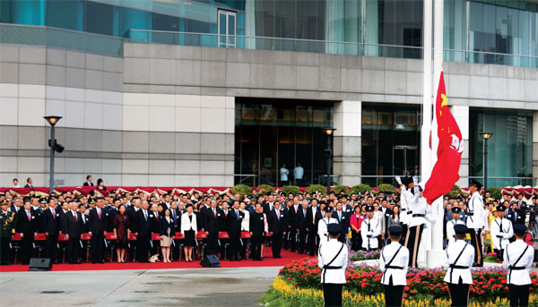 Chief Executive Leung Chun-ying told the assembled group of government leaders and local dignitaries that Hong Kong's future resides in "One Country, Two Systems", and he called on all sides to support reforms leading toward the cherished goal of universal suffrage for Hong Kong.