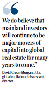 "We do believe that mainland investors will continue to be major movers of capital into global real estate for many years to come," said David Green-Morgan, JLL's global capital markets research director. "But, a similar increase in 2017 may be challenging given the recent discussion about monitoring its capital outflows on mainland."