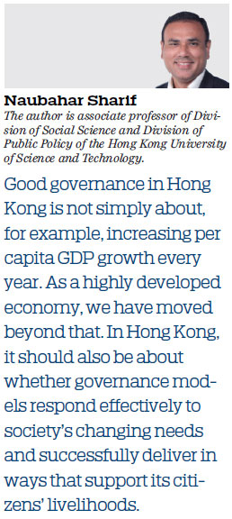 Good governance in Hong Kong is not simply about, for example, increasing per capita GDP growth every year. As a highly developed economy, we have moved beyond that. In Hong Kong, it should also be about whether governance models respond effectively to society's changing needs and successfully deliver in ways that support its citizens' livelihoods.