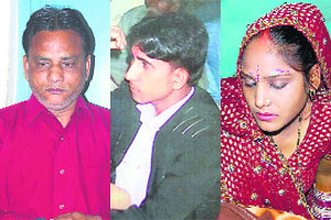 从左至右:新郎官叔叔、新郎和新娘
