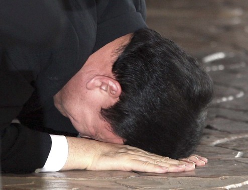 他信走出机场贵宾室后含泪跪地