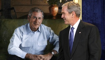 中国日报网环球在线消息:12月19日,美国总统布什在国家人物画廊揭幕了他的肖像画。尽管他的两个任期以两场战争和一场全球金融危机为鲜明标志,但画中的布什总统却显得悠然自在,并惬意地微笑着,似乎8年的混乱执政并没有将他搞得狼狈不堪。