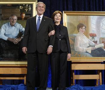 布什的肖像画将与夫人劳拉的画像一起摆在美国国家人物画廊里,这里是白宫以外完整收藏历届总统肖像的唯一场所。布什开玩笑说:“现在,这个画廊形成了某种对称——它是从乔治·W(他是指美国开国总统乔治·华盛顿)开始的,现在又以乔治· W 结束。”他还说:“与这么多出色的领导人归到一起,我感到有些羞愧。这个收藏最有意义的一点就是,参观者可以审视这些塑造国家历史的人的面貌,同时研究历史又是如何塑造了他们。” 据国家人物画廊介绍,这是他们第一次收藏总统与夫人的坐姿肖像。