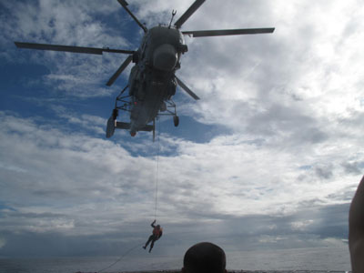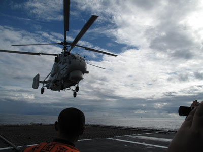 这是“海口”号导弹驱逐舰的特战队员首次与舰载直升机组互相配合,举行“机滑降”训练。一名特战队员在接受中国日报采访时说,在出航前,他们就曾经多次举行这种“机滑降”训练,为在到达指定海域后登临可疑船只实施检查做好准备。