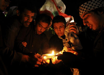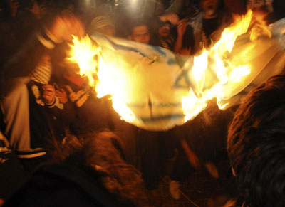 科威特示威者在点燃以色列国旗,以抗议以色列对加沙地带的空袭。