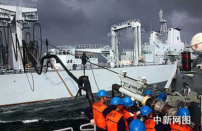 中国日报网环球在线消息:中国海军赴亚丁湾、索马里海域护航编队30日下午成功进行了首次海上液货补给。